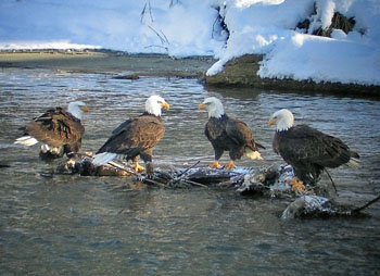 It is no surprise that four of Washington's woodpeckers are found in RSP. Red-breasted Sapsucker, Pileated Woodpecker, Hairy Woodpecker, and Northern Flicker can be seen, and the first three are known to nest in the park. Two owl species also occur: Barred and Northern Pygmy-Owl. RSP is a good place to see Ruffed Grouse - watch for them in the edge habitats. Bald Eagles and Osprey have nested here. In all seasons, one can find Varied Thrush, Chestnut-backed Chickadee, Winter Wren, Brown Creeper, Golden-crowned Kinglet, Red Crossbill, and Steller's Jay. Less regular visitors are Pine Siskin and Hutton's Vireo. Summer brings migrants north to nest: Western Tanager, Swainson's Thrush, American Robin, MacGillivray's Warbler, and American Robin. If visiting in winter, continue on Route 20, stopping along the Skagit River at the Nature Conservancy's Bald Eagle Natural Area. It is an unforgettable sight: perhaps more than a hundred Bald Eagles feasting on the carcasses of chum salmon!